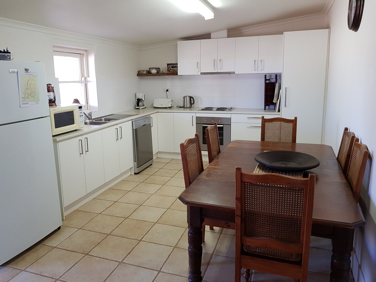 Bluebush Shed es tu hogar lejos de casa, ¡frente al icónico Cradock Pub! Amplio, con todas las comodidades, incluido un calentador de leña para mantenerte caliente en los meses más fríos, baño rústico, cómodo salón para relajarte mientras disfrutas de la tranquilidad de las Flinders Ranges. 1 cama tamaño queen y 2 camas individuales tamaño king para una estancia cómoda. A solo 25 km de la ciudad más cercana de Hawker para comprar provisiones y recuerdos.