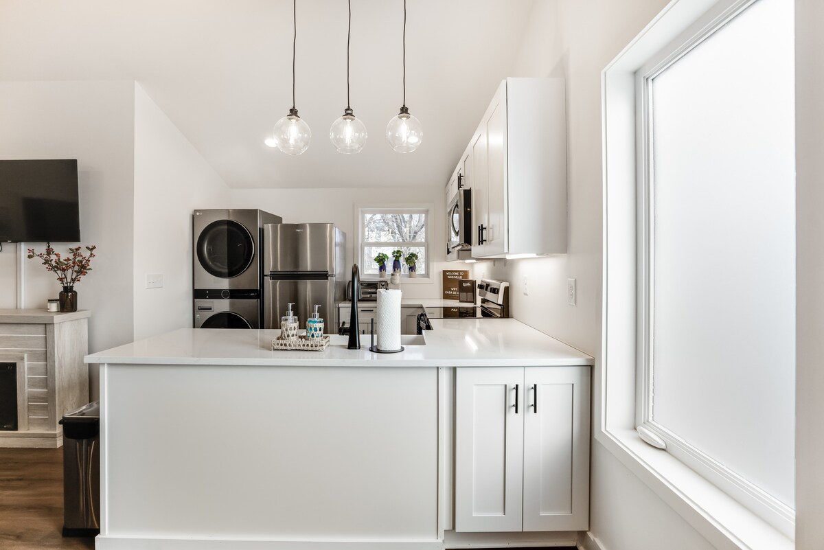 Hogareño y cómodo, cocina y 2 dormitorios, 950 pies cuadrados