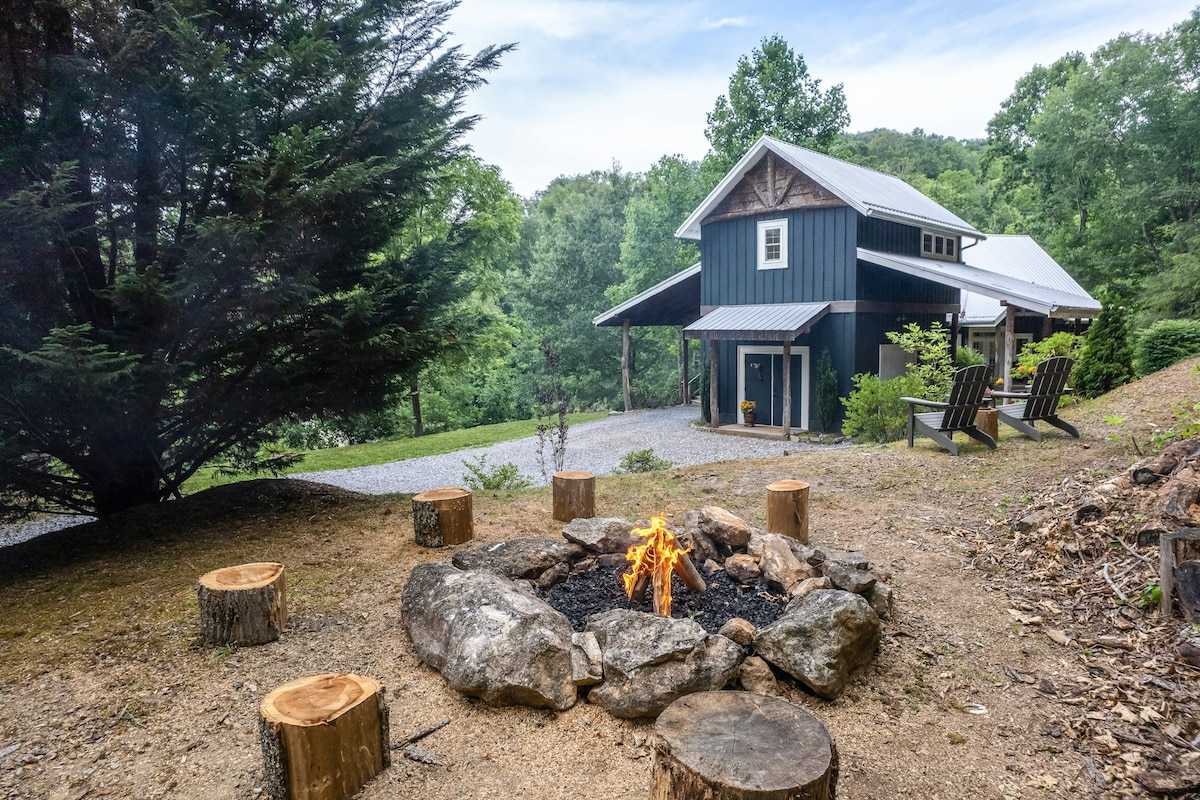 Relax, restore, and rejuvenate while basking in the beauty of the Blue Ridge Mountains. Enjoy a private living-room, dining space, kitchen area, bathroom, reading nook, washer and dryer, and bedroom. Soak up breathtaking mountain views from your private outdoor patio. This getaway is pet friendly since we all know the mountains are better with your best furry friend by your side. Only a 20 minute drive to the slopes! *Very close to the NC entrances of the Great Smoky Mountains National Park!