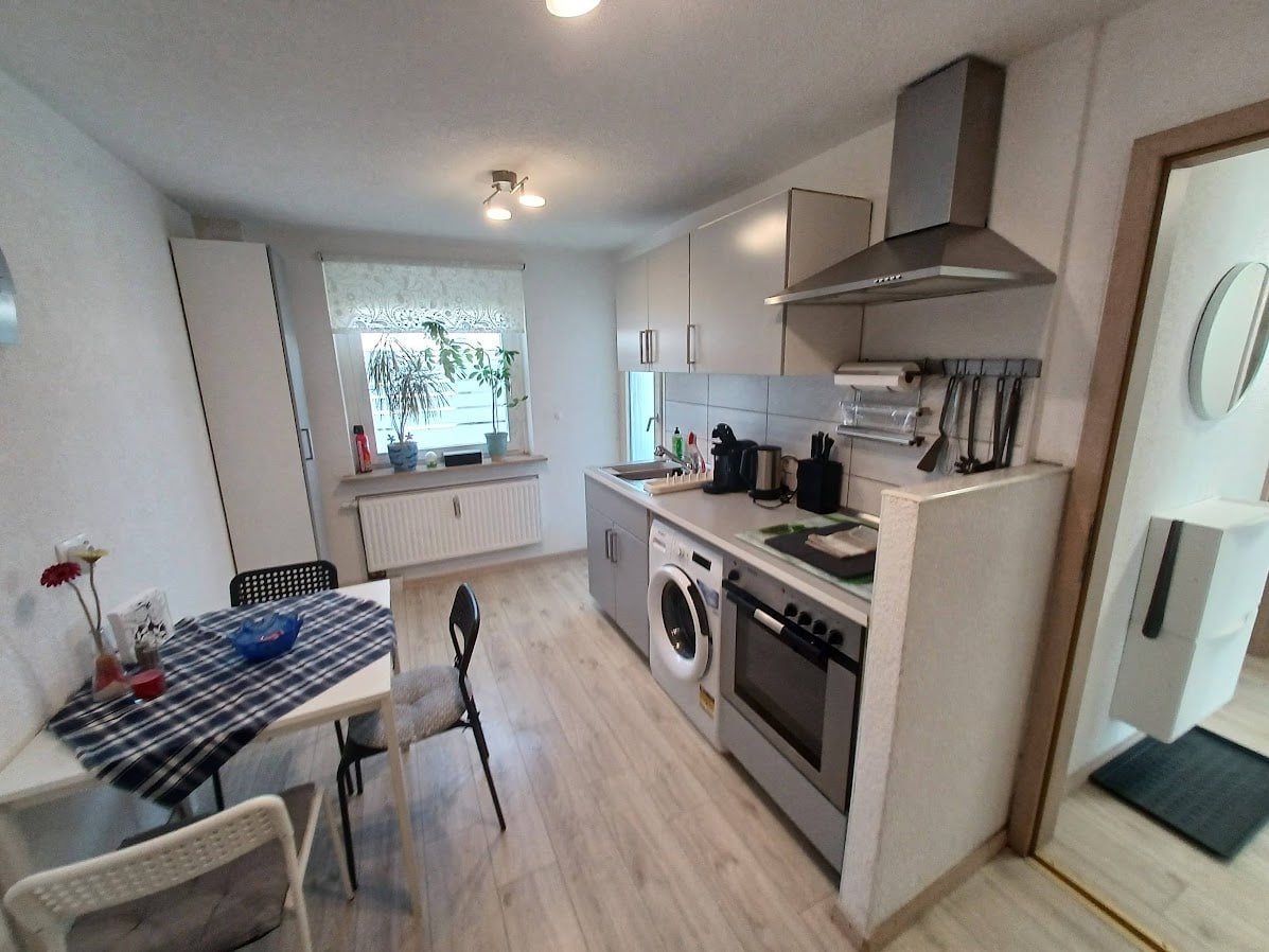¡Ideal para familias! Apartamento de 3 habitaciones con más de 70 metros cuadrados en una casa tranquila de 2 familias. Cocina totalmente equipada (+ microondas, lavavajillas, cafetera, hervidor de agua, vajilla, cubiertos) Baño recién renovado con ducha y WC. Balcón. Lavadora y secadora en el sótano. Buena conexión de autobús: paradas Schanz Nord y Kraichgauplatz: líneas de autobús, por ejemplo, 10, 41 y 61). Pequeño supermercado con panadería y farmacia a poca distancia a pie.