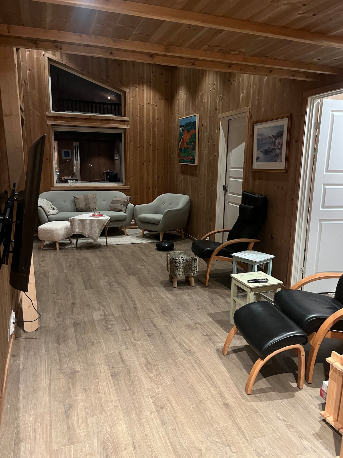 Ven a las camas listas. Casa grande de 96 m2 con gran terraza, barbacoa y hermosas vistas. 2 dormitorios. Increíbles condiciones de sol. Situado en la granja en funcionamiento con producción lechera. Estacionamiento privado justo afuera de la puerta. Rampa para sillas de ruedas, todo en una sola planta. Oportunidades para ver las auroras boreales, los alces y los ciervos desde la terraza. Apto para niños. Proximidad inmediata al bosque, oportunidades de senderismo y pistas de esquí. Pesca de salmón y caza de caza pequeña en las inmediaciones. Se puede traer un teleférico de carga privado. El cargo se paga de acuerdo con el consumo.