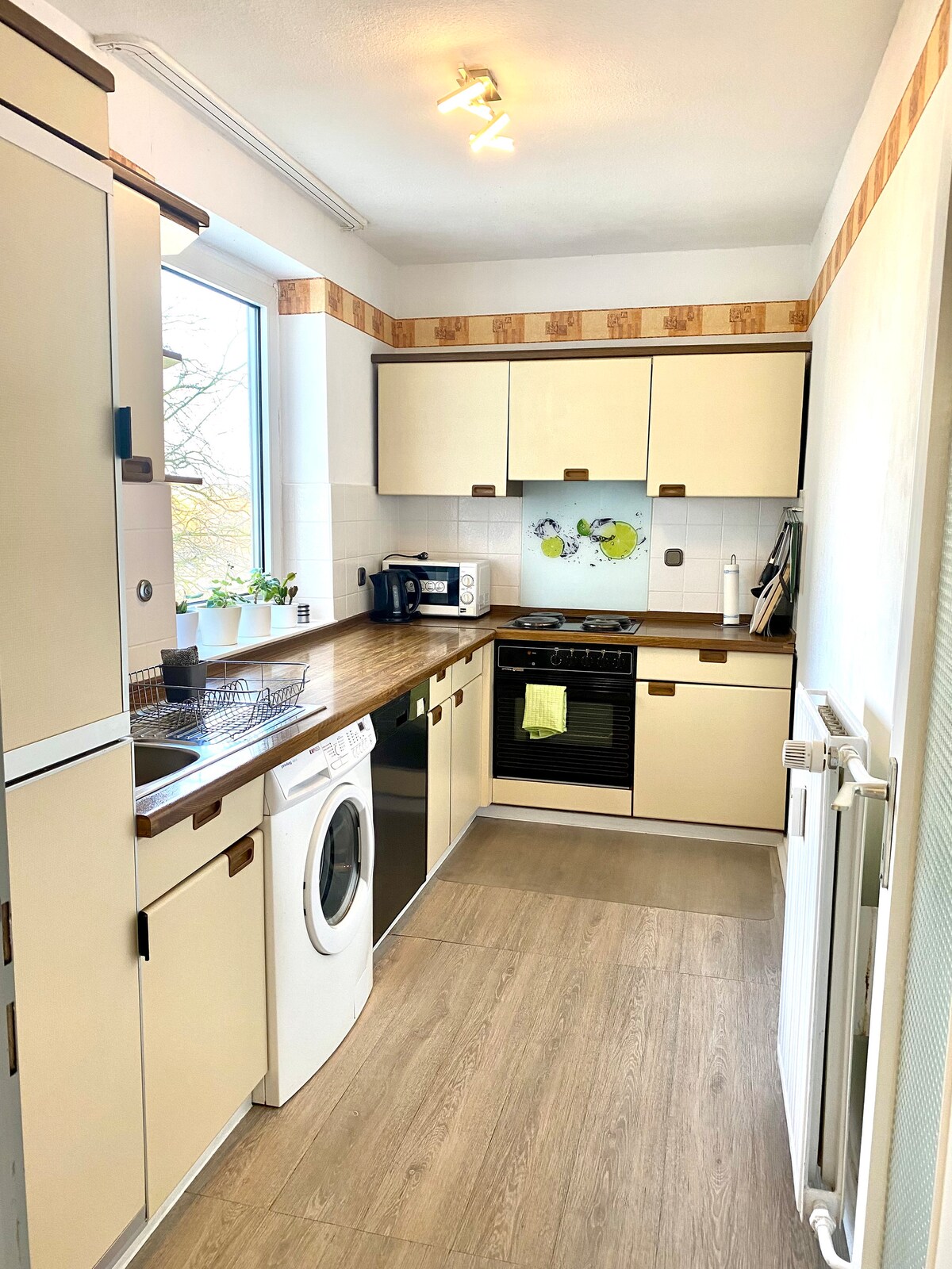 El apartamento mide casi 70 m² con sala de estar, dormitorio, baño y cocina. El recinto ferial de Hannover está a 7 km y se puede llegar en coche en pocos minutos. El baño está justo al lado del dormitorio y solo se puede llegar a través de él. El apartamento tiene capacidad para 4 personas (dormitorio = cama doble / sala de estar = cama individual y sofá cama con somier)