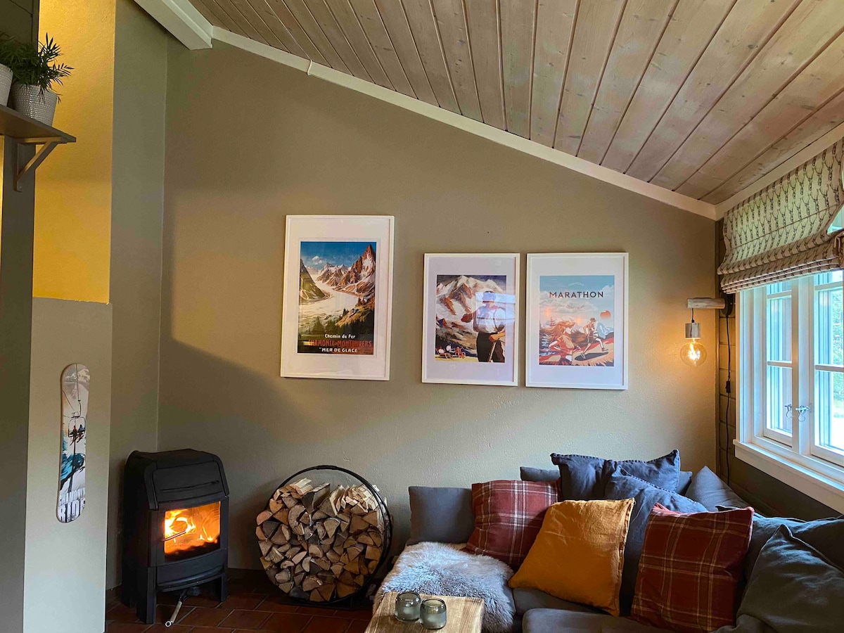 Disfruta de los elegantes días inspirados en "Chamonix" en Hemsedal; súper ubicación. Alquilé mi mini cabaña (31 m2) en Hemsedal. Cuenta con todo lo que necesitas para días agradables; tanto fuera como dentro. Puedes encender la chimenea y leer en mis libros de montaña. Este es mi sueño, que la compartiré contigo. Limpia con cabaña😍. Yo mismo he pintado y renovado. Dormitorio con cama matrimonial de 160 cm Propietarios con una cama de 130 cm Cafetera por la mañana. 🥰 Trae sábanas. Lavas la cabaña nosotros mismos, encontrarás equipo en la cabaña. Estacionamiento n .º 23