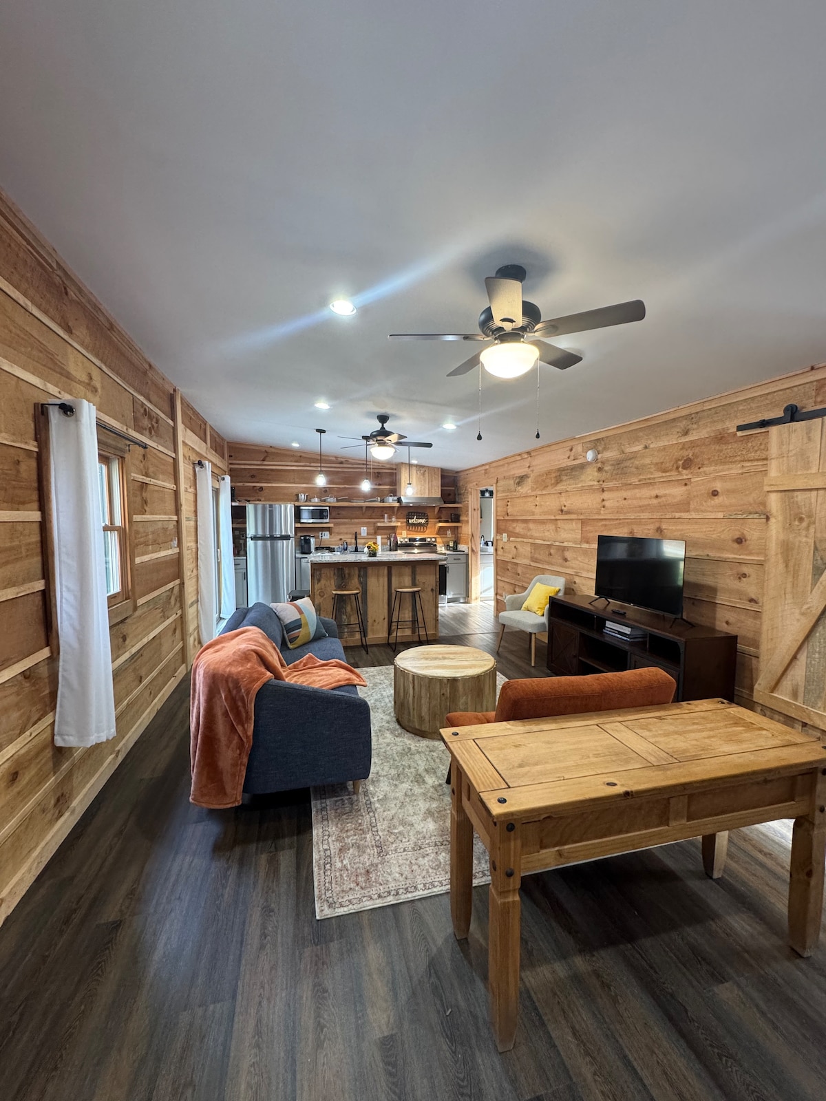 Casa de huéspedes de 850 pies cuadrados situada detrás de la carretera principal para mayor tranquilidad y privacidad. Tienda de comestibles y varios buenos restaurantes a solo una milla de distancia. A solo 7 minutos de la histórica calle principal del centro de la ciudad. Amplia sala de estar, planta abierta en sala de estar/comedor/cocina. Mucho espacio para cuatro personas. Dormitorio extragrande con una cama tamaño king de lujo.