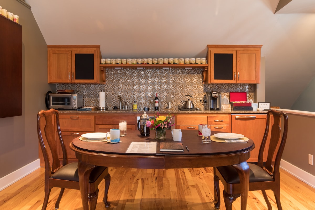 ¡Bienvenido a nuestro encantador estudio en el tercer piso ubicado dentro de una casa victoriana en el corazón del distrito de las artes del noreste! Este acogedor refugio cuenta con abundante luz natural que fluye a través de tragaluces, iluminando un espacio adornado con hermosas plantas, creando un ambiente sereno y atractivo. Este encantador refugio cuenta con una cálida chimenea perfecta para relajarse en las noches frías. Ten en cuenta que hay un poco de espacio libre cerca de la cabecera de la cama y en el área del baño/cocina.