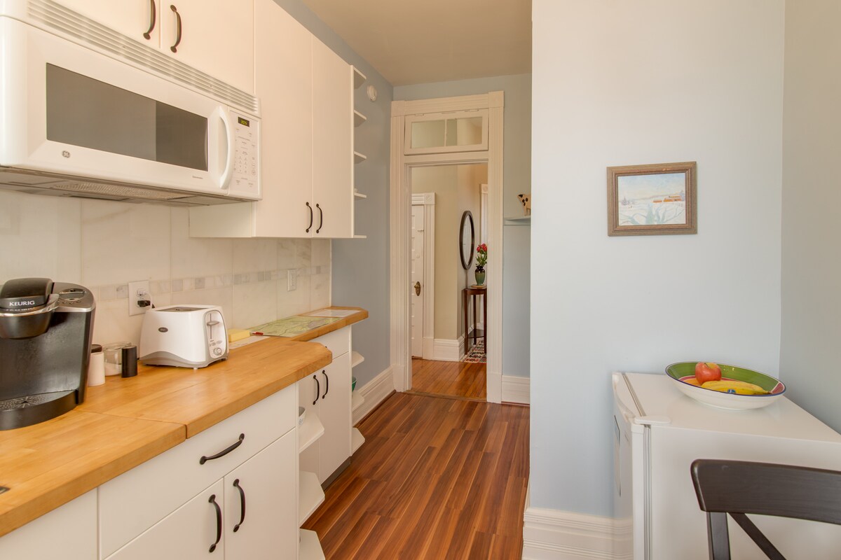 ¿Por qué quedarse en lo de siempre cuando puedes experimentar lo extraordinario? Apartamento amueblado con entrada privada, patio, cocina comedor, lavadora/secadora, todas las comodidades, wifi de fibra óptica Fios rápido y aparcamiento gratuito. En una ubicación deseable: St. John's Church, distrito histórico de Church Hill, un encantador pueblo urbano en el corazón de una ciudad moderna. Los huéspedes nos dicen que el apartamento es tranquilo, relajante y te hace sentir como en casa. Un barrio transitable con restaurantes. Los huéspedes pueden guardar las bicicletas dentro de una puerta cerrada.