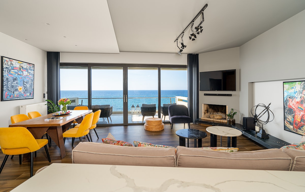 ¡Loft elegante y minimalista de 90 metros cuadrados, renovado en mayo de 2019, ubicado sobre el puerto y castillo de Heraclión con 2 balcones privados con vistas al mar y al jardín! ¡Dos dormitorios grandes ofrecen camas tamaño king con colchones ecológicos de aloe vera para dormir profundamente! Mímate en el enorme sofá viendo Netflix a 58 pulgadas de televisión. ¡La cocina está totalmente equipada con inducción y horno modernos!¡Lavadora y secadora para tus comodidades! ¡El baño es absolutamente minimalista y espacioso!¡Eco-Inverter Klima y estacionamiento gratuito!