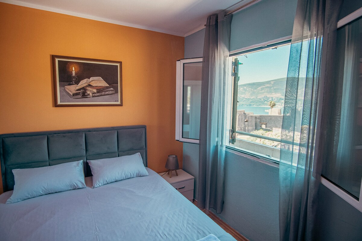 Fantastic view from the terrace and balcony at Boca Kotor bay and surrounding mountains. Just 5 minutes walk to the sea, ferry crossing and bus station. Kamenari is an ideal place for secluded quiet vacation while logistics is very convenient to get to the airport of Tivat, ancient Kotor, vibrant Budva and historical Herceg Novi. Fresh mountain air and crystal clear Adriatic sea. You will definitely feel yourself happy and energised after your holidays in Superb View & 2 Steps to the Sea)