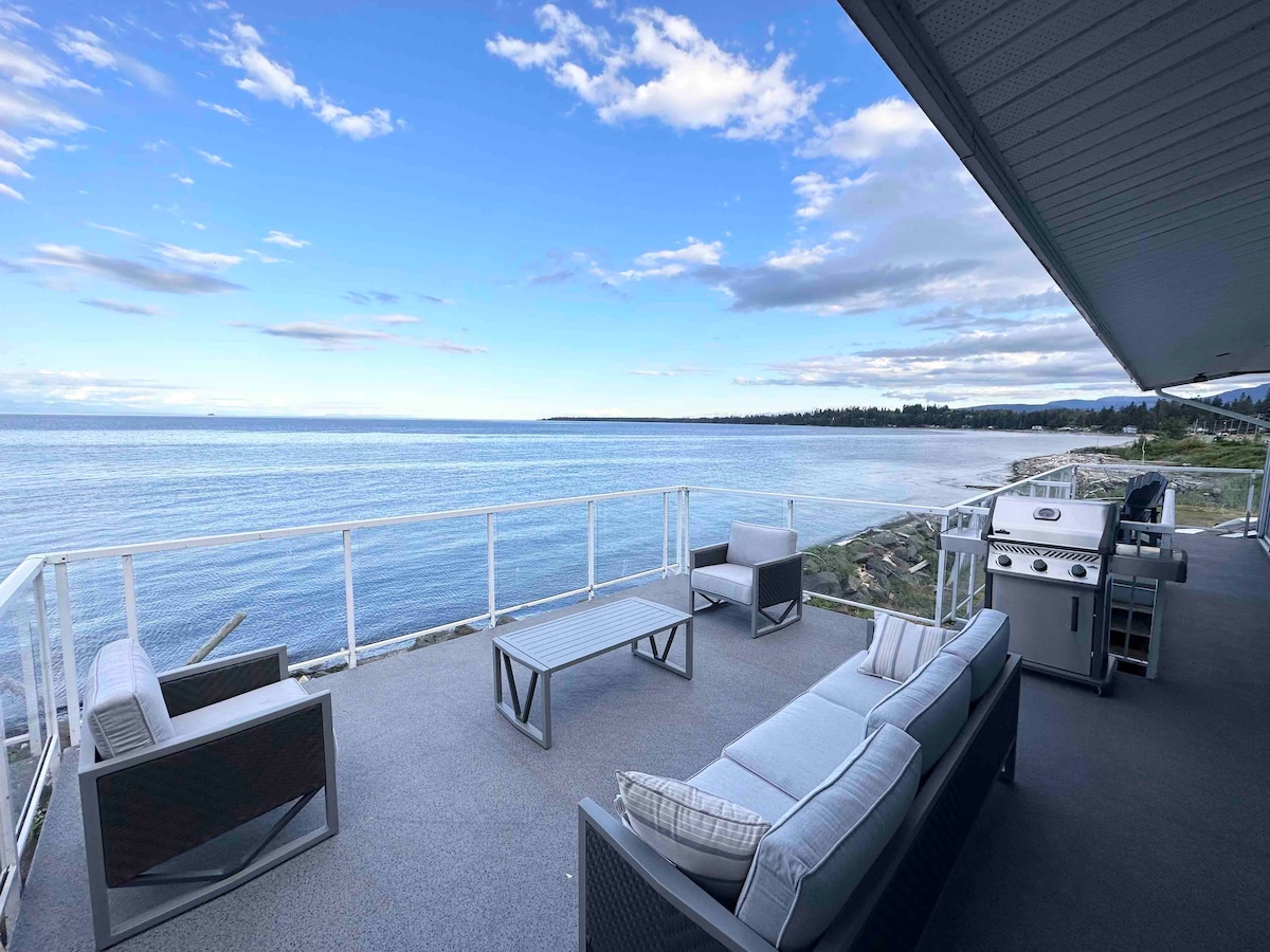Walk on ocean front, bright and private, 2-bedroom cottage with sauna, offering stunning views of the Georgia Strait. This charming oceanfront retreat features a fully loaded kitchen with modern appliances, laundry facilities, and a luxurious spa like walk-in pebble shower. The cozy living room is designed to capture panoramic ocean and mountain views, with the sounds of nature creating the perfect space to relax and unwind.