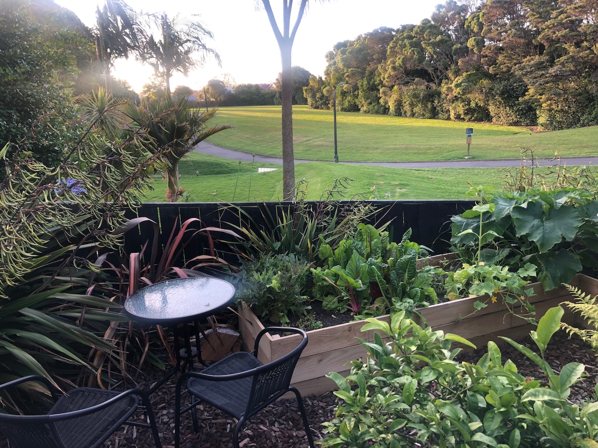 Literalmente a solo unos minutos de las delicias culinarias y comerciales de Ponsonby Rd y, sin embargo, a un mundo de distancia... Ubicado entre nuestro jardín y con vistas a una tranquila reserva natural, es el lugar perfecto para tu estancia en Auckland. Completamente privado con acceso propio, espera una cama tamaño queen supercómoda, una gran bañera y una zona al aire libre desde la que podrás disfrutar del canto de los pájaros y las vistas del atardecer. Hay estacionamiento fuera de la calle. Ten en cuenta que tenemos gatos amistosos.