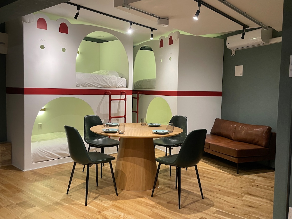 【下北沢駅2分】ダブルベッド2台/最大4名/ゆったりくつろぎルーム/ボードゲーム・調理器具充実/