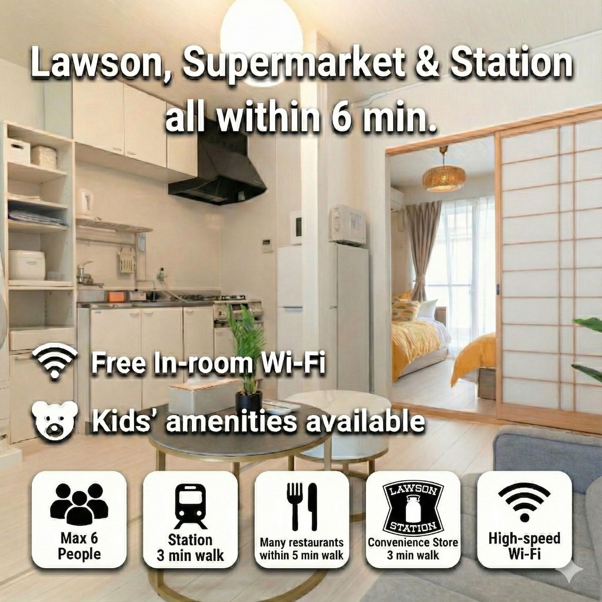 La habitación tiene 31 m2, limpia y acogedora, ubicada a 2 minutos a pie de la estación de metro y la parada de autobús directo al aeropuerto, a 3 minutos. Namba y Dotonbori a 5 minutos en metro. Este edificio se encuentra en el centro de la ciudad, puede sonar desde el tráfico y el ruido de la construcción durante el día. La policía y sirena de ambulancia incluso a medianoche. La cuna cuesta 1000 yenes por 1 noche, la silla para bebés cuesta 1000 yenes por tu estadía. Si los niños ensucian mucho la alfombra y la pared, se agrega un cargo de limpieza adicional (5000 yenes) Este edificio tiene ascensor hasta la habitación de invitados.