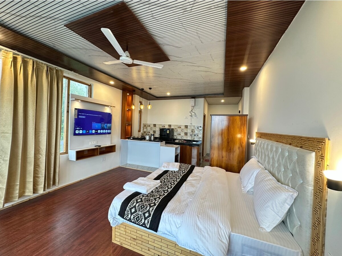 Te damos la bienvenida a tu santuario privado en el sereno pueblo de Dharamkot, ubicado sobre McLeod Ganj. Nuestro departamento de lujo en el Himalaya ofrece la combinación perfecta de comodidad, elegancia moderna y vistas impresionantes a la montaña, diseñado para viajeros exigentes que buscan tranquilidad sin comprometer el estilo. Despertate con vistas panorámicas de la majestuosa cordillera de Dhauladhar desde tu lujosa cama tamaño king o tu balcón privado.