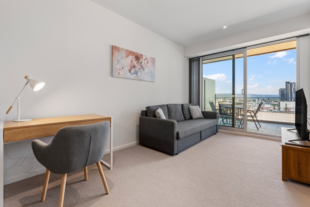 Bienvenido a nuestro refugio de 1 dormitorio en el corazón de Adelaide CBD, con el distrito comercial Rundle Mall en la planta baja. Totalmente equipado con una cama tamaño queen, un sofá de 2,5 plazas que se puede plegar en una cómoda cama tamaño queen, una mesa de comedor de 4 plazas, una cocina totalmente equipada y una lavadora-secadora combinada. Disfruta de una brisa fresca desde nuestro balcón privado en el nivel 13 con una mesa al aire libre y 2 sillas. También tendrás acceso al gimnasio en el nivel 8.