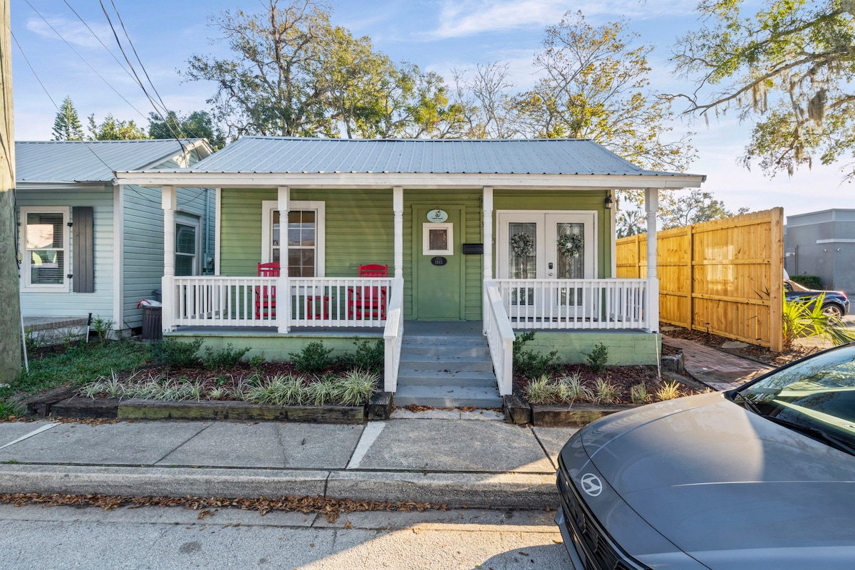 ¡Experimenta el centro de St. Augustine! A solo 3 cuadras de St. George St., este apartamento a nivel del suelo está a poca distancia a pie de todas las atracciones del centro de la ciudad y del centro de la ciudad El espacio tiene un plano de piso abierto: un dormitorio semiprivado se conecta a una sala de estar separada y una cocina para comer. El baño de lujo, la lavandería y el porche delantero privado crean un entorno cómodo para familias o grupos. Ventana agregada: hay una oficina aislada para aquellos que quieran trabajar sin molestias. Estacionamiento gratuito en el lugar.