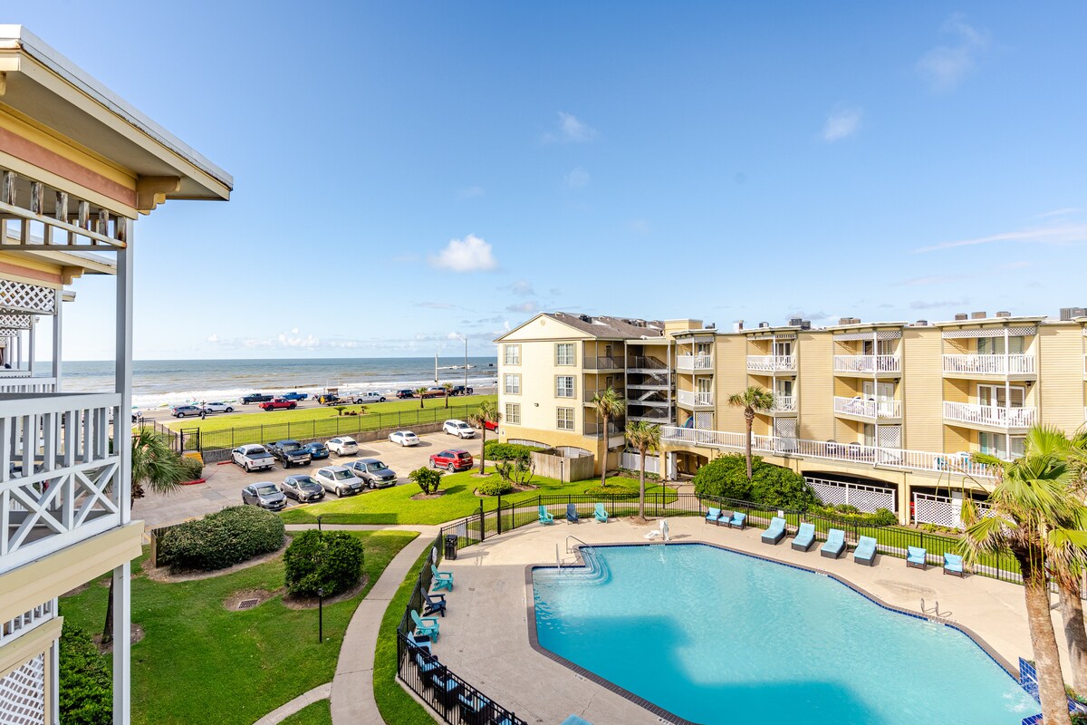 Este encantador monoambiente en esquina frente a la playa, entre Stewart Beach y East Beach, tiene un gran balcón y amplias vistas al golfo. Está bien equipado para dos o para un retiro en solitario. ¡El complejo turístico ofrece pileta y pickleball! No hay calle que cruzar para llegar a la playa, sin embargo, el condominio está cerca del centro de Galveston y del malecón. Disfruta de los hermosos amaneceres y contemplar la luna, sigue los cruceros de ida y vuelta, echa un vistazo a la actividad en la playa, flota en la piscina climatizada o relájate y observa las olas.