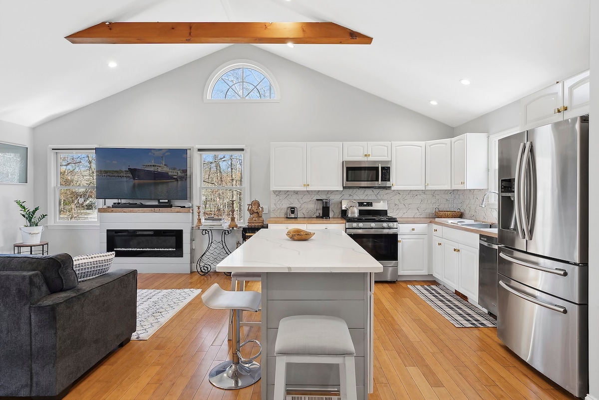 Escandinavia se encuentra con Montauk en esta escapada sofisticada, cómoda y para todas las estaciones con interior de planta abierta y un gran patio vallado privado. • 88 metros cuadrados, 2 dormitorios (compactos pero cómodos), 1 baño, cocina completa de alta gama, lavadora y secadora, aire acondicionado • Estufa de leña, estufa Solo, patio, ducha al aire libre, sábanas y muebles/decoración de alta gama • Pasos a LI Sound & Harbor. 3 millas al océano/pueblo • El propietario está en un estudio privado con entrada propia en la casa. ¡No hay espacios compartidos! • Preguntá sobre los perros y la flexibilidad en los períodos de alquiler ¡Hacé clic en MÁS para obtener INFORMACIÓN IMPORTANTE!