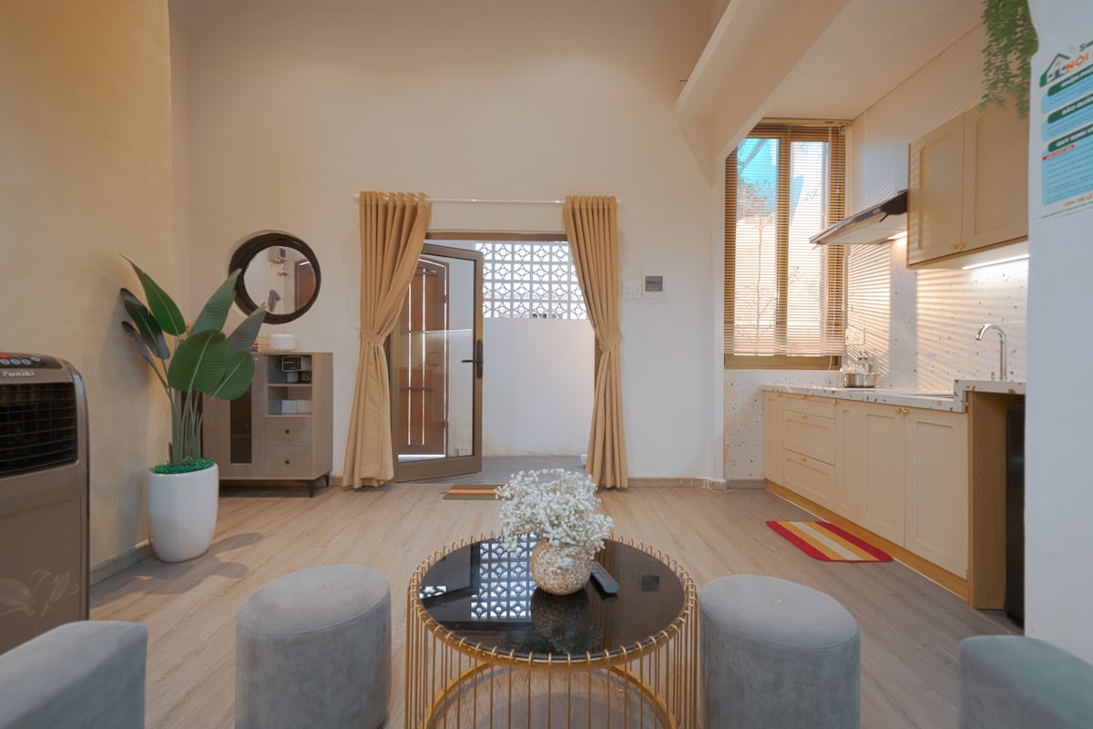 𝑾𝒂𝒓𝒎𝒆𝒔𝒕 𝒊𝒔 𝑯𝒐𝒎𝒆. 𝑯𝒂𝒑𝒑𝒊𝒆𝒔𝒕 𝒊𝒔 𝒉𝒂𝒗𝒊𝒏𝒈 𝑴𝒐𝒎, 𝑫𝒂𝒅, 𝒂𝒏𝒅 𝒇𝒐𝒐𝒅 𝒓𝒆𝒂𝒅𝒚 𝒊𝒏 𝒕𝒉𝒆 𝒌𝒊𝒕𝒄𝒉𝒆𝒏. Nestled in Da Nang, Me Home is a charming 2-bedroom retreat with a cozy kitchen and garden. Balancing simplicity and sophistication, it's a homely space offering hotel conveniences. Just minutes from landmarks, cafes, and vibrant streets, it's your perfect base to explore the city.