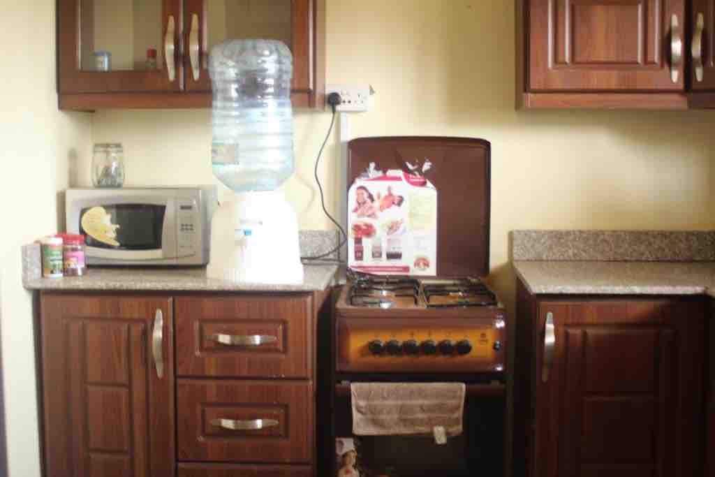 Disfruta de tu estancia en la ciudad de Hoima en nuestro prestigioso apartamento totalmente amueblado, muy cerca de centros comerciales, hospitales y senderos serenos. Cuenta con una cocina totalmente equipada, un juego de comedor, una cama y colchón de alta calidad, asientos acogedores, botiquín de primeros auxilios, un extintor de incendios y TV.