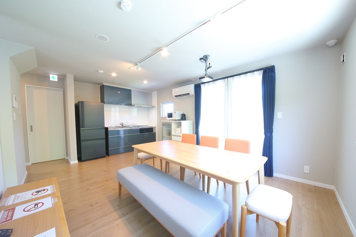 Incluye 5 dormitorios más una gran sala de estar. Elegante y funcional Un montón de almacenamiento garantiza una estancia desordenada, incluso para grupos grandes. Espacios sociales y privados Reúnete en áreas compartidas o relájate en tu propia habitación. Pantalla de 120 pulgadas Disfruta de películas con un proyector . Supermercado cercano. ¡Perfecto para familias o grupos! Parrilla y sauna privada. [Option Set: ¥ 24,000] *Solo hay un aire acondicionado en el living. (Hay varios ventiladores eléctricos). Todas las habitaciones tienen calefacción.