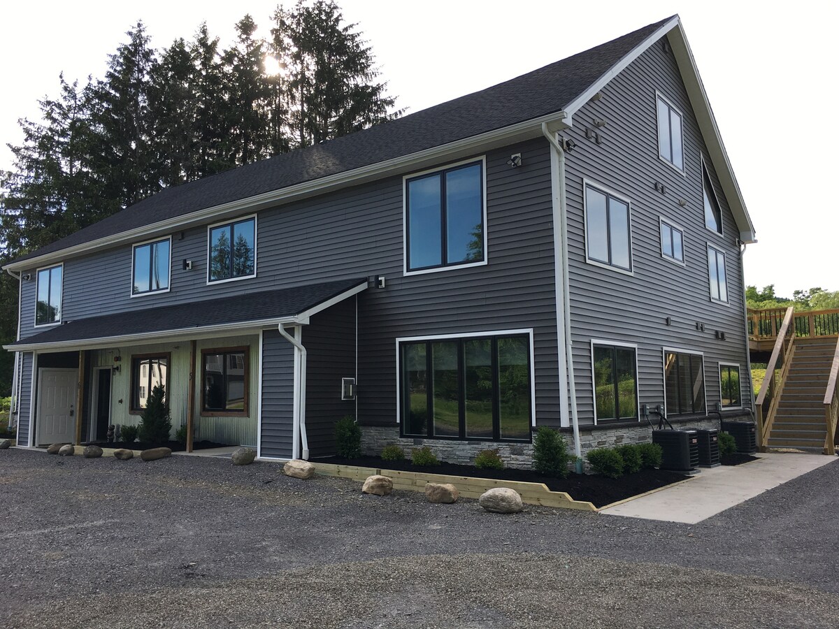 El Chalet Mountain View es una espectacular casa de 3,200 pies cuadrados con 5 dormitorios y 4 baños escondida en una colina con vistas a las laderas de Holiday Valley. Esta es una casa de vacaciones perfecta para una familia numerosa o un grupo de familias que disfrutan reuniéndose. La pared de ventanas de dos pisos ofrece una vista impresionante de la campiña que la rodea. Una chimenea de leña, enfriador de vino, cocina bien equipada, una gran terraza y un jacuzzi para 6 personas mejoran tu entorno privado. Invierno, primavera, verano u otoño, ¡te encantará!