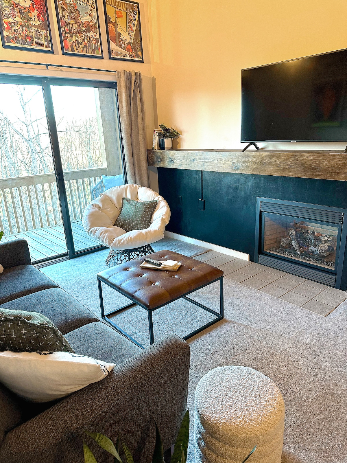 Experience Ellicottville's charm at our cozy Airbnb! Separate bedroom NOT an open loft! Ideal for 1-2 couples, this retreat offers 2 bedrooms, comfy beds, and 1.5 baths. Relax by the inviting indoor fireplace. Walk to downtown for fine dining or catch the shuttle to the resort for outdoor activities. Book now and discover the magic of Ellicottville in comfort and style!