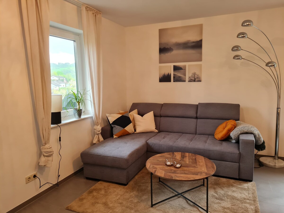 Departamento de 2 habitaciones totalmente amueblado con terraza en Künzelsau Disfruta de tu estadía en este acogedor apartamento de 2 habitaciones totalmente amueblado en la ladera sur de Künzelsau. El apartamento ofrece todo lo que necesitas para una estancia cómoda y es ideal para parejas, familias o viajeros de negocios. Las comodidades incluyen: Dormitorio: cama cómoda y amplio armario para suficiente espacio de almacenamiento. Sala de estar: sofá acogedor con función de sueño Cocina: totalmente equipada con platos
