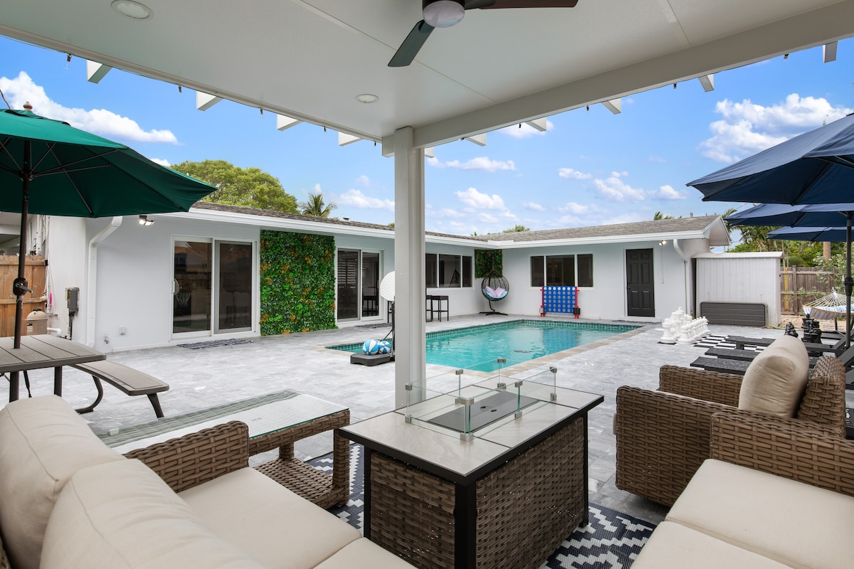 Escápate a esta casa familiar ubicada en Fort Lauderdale. Convenientemente a 10 minutos del aeropuerto y a 7 millas de la playa, esta elegante propiedad ofrece la mezcla perfecta de lujo y conveniencia. En el interior, disfruta de colores elegantes y acogedores con amplias áreas de estar y un interior acogedor. ¡Sal a un patio trasero bellamente ajardinado con una piscina privada climatizada, comedor al aire libre para la familia e incluso un poco de cornhole mientras esperas a tus perritos calientes fuera de la parrilla! ¡Tu paraíso te espera!