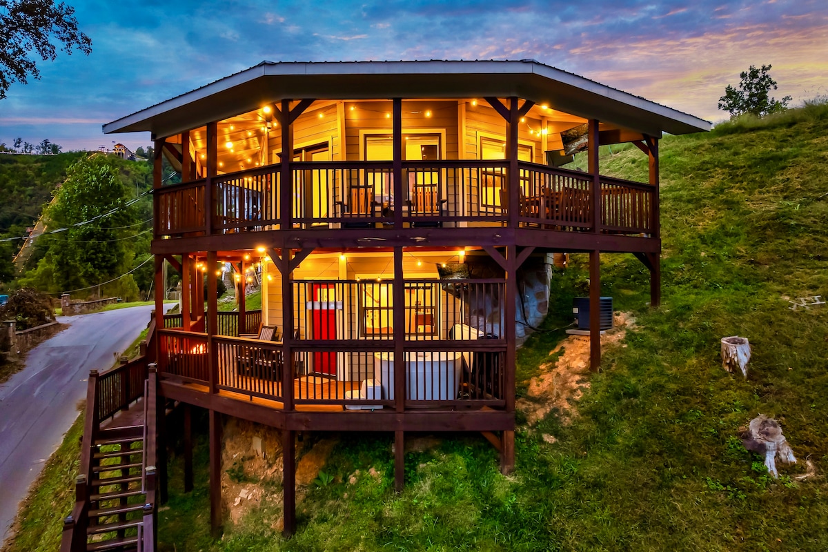 Bienvenido a Moonshiners Hideout, un lujoso refugio de reciente construcción donde las comodidades elevadas se combinan con un entretenimiento sin fin. La sinuosa subida hasta la cabaña merece la pena por las impresionantes vistas que se ofrecen a la llegada. La cabaña está adornada con un sinfín de comodidades y ofrece un toque de lujo en cada habitación. Relájate en la espaciosa terraza con jacuzzi privado, juegos y asientos al aire libre, o escápate y disfruta de las vistas desde los balcones de la planta superior que dan a cada dormitorio. ¡Reserva hoy mismo la estancia de tus sueños!