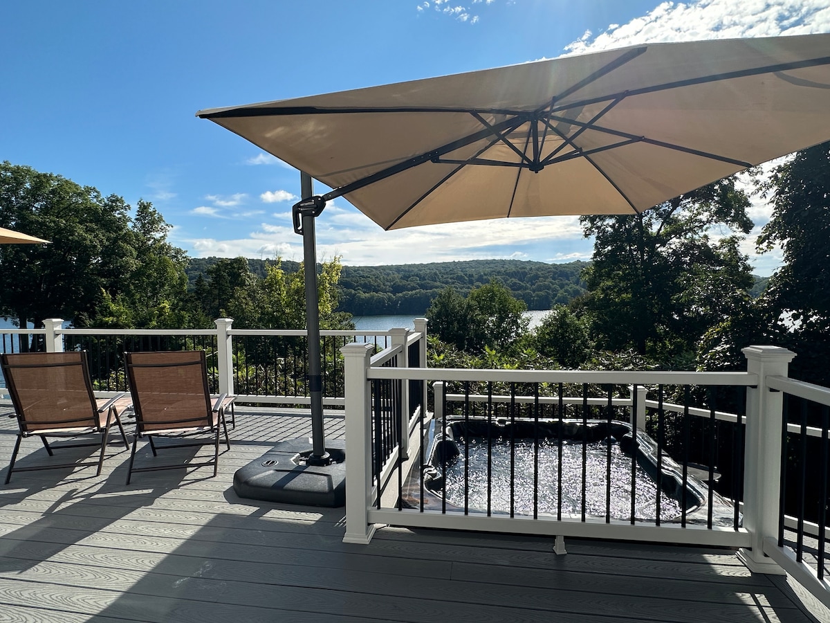 An original Candlewood style cabin. The house has been updated to offer all modern comforts. It features a large fireplace in the living room, porch over looking the lake, central heat and air conditioning and a fully equipped cook's kitchen. It is on the northern most part of Candlewood Lake with direct, private water access from the shore or the dock. A foam lily pad, two SUP, and two inflatable two person kayaks are available for use from May 1 to November 1..