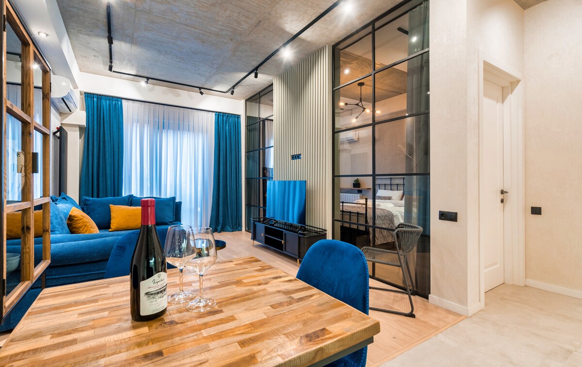 Se trata de un cómodo apartamento renovado con ladrillo visto y auténtico toque tiflisí. Este estudio tiene un baño transparente con bañera moderna, cama tamaño king, sofá Chesterfield, etc. El espacio tiene capacidad para 2 personas y se encuentra en una calle peatonal histórica. Internet wifi de alta velocidad e IPTV (canales internacionales) se proporciona de forma gratuita. El apartamento también está bien situado para el transporte: el metro Marjanishvili y las estaciones de autobús están a poca distancia a pie y te llevan a cualquier lugar de Tiflis en poco tiempo.