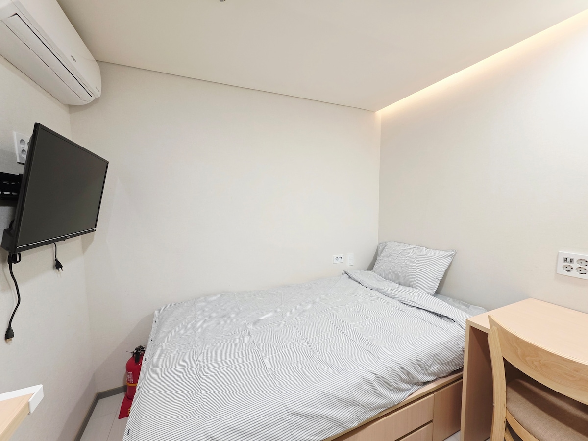Habitación individual | Baño privado | Autobús al aeropuerto, metro a 5 minutos | Myeong-dong, Dongdaemun, Seongsu, Hongdae 20-35 minutos | Secadora, agua embotellada, fideos instantáneos gratis