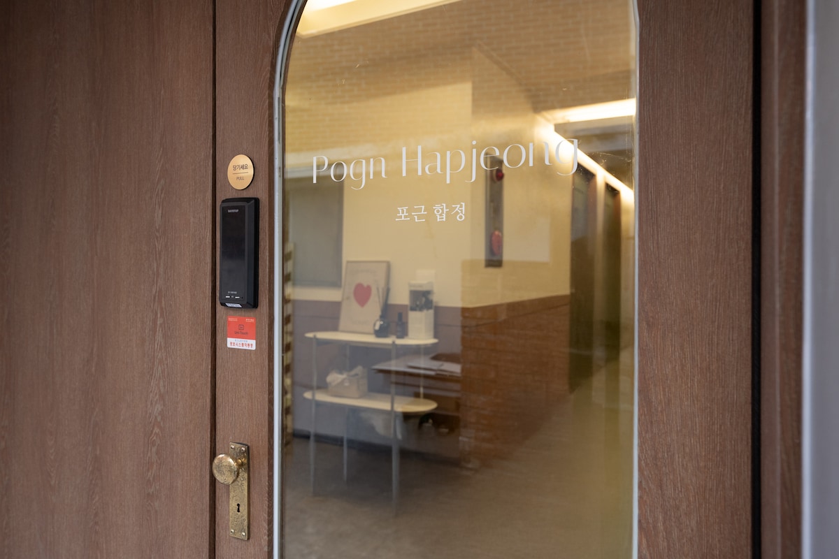 🏠 Pogn Hapjeong 포근 합정 *25년 open & 화장실 포함 전객실 리모델링 *호텔식 구조로 개인 객실 및 화장실 사용 / 창문 있음 *전객실 금연 (별도 흡연공간 3층 외부에 위치) #위치 합정역 & 망원역 도보 7분 거리로 접근성이 매우 좋아요! 초등학교 바로 앞이라 조용하고 안전합니다 :) *도보기준* 홍대 중심가 15분 / yg엔터 9분 메가커피 1분 / 세븐일레븐 3분 / 올리브영 7분 망원시장 10분 / 망원한강공원 10분 📍홍대입구역 도보 20분 / 버스 8분 (추천🌟) *숙소 도보 1분거리 [성산초등학교입구] 정류장에서 271번 버스로 4정거장 (배차간격 6분) 📍인천공항에서 숙소까지 오는 법 [인천공항] ↔ [합정역] 6002번 공항버스 약 40분 소요 (환승X, 하루 71회 운행) 합정역 하차 후 도보 7분이면 숙소 도착