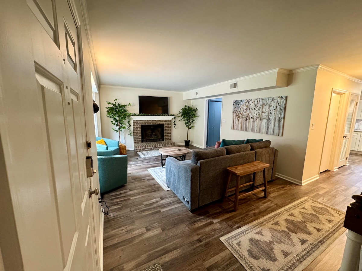 ¡Disfruta de esta espaciosa casa adosada de 2 dormitorios ubicada a 10 minutos del centro de la ciudad! Incluye cocina completa, comedor, lavadora/secadora, aparcamiento gratuito y mucho más. Suelos de madera en todas partes. Reserva tus fechas ahora. ¡Estamos deseando que participes en la experiencia! Dos plantas con dos dormitorios separados arriba y una sala de estar/cocina en la planta principal. - Dos camas tamaño king arriba (4 plazas). - Un futón completo en el nivel principal (2 plazas). Perfecto para familias, amigos, profesionales, huéspedes con mascotas. Incluye parque infantil, silla alta, lavadora/secadora, TV de 50 pulgadas, etc.