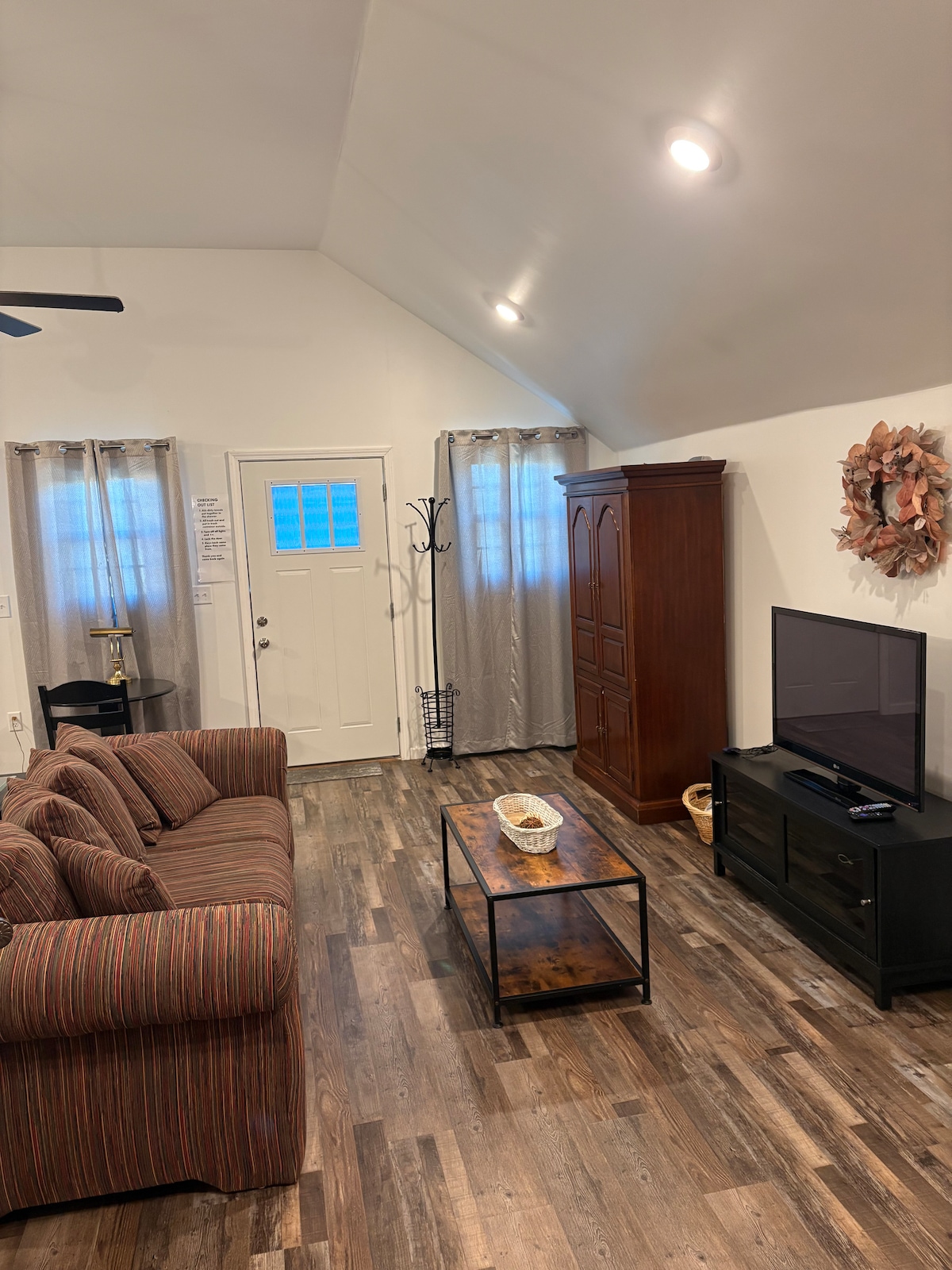 Tómate un descanso y relájate en esta tranquila casa de huéspedes ubicada en la histórica Greenwood Ave. A 1 milla del centro de la ciudad y APSU, esta pintoresca casa está llena de comodidades y esperándote. Disfruta cocinando en la cocina equipada, cena frente a la chimenea eléctrica con ajustes remotos. Un montón de juegos y Roku TV para pasar el tiempo. El dormitorio queen es ideal para 2 adultos, mientras que la sala de estar tiene 2 camas otomanas individuales disponibles para niños. Baño completo, lavadero y un escritorio para el profesional que trabaja.