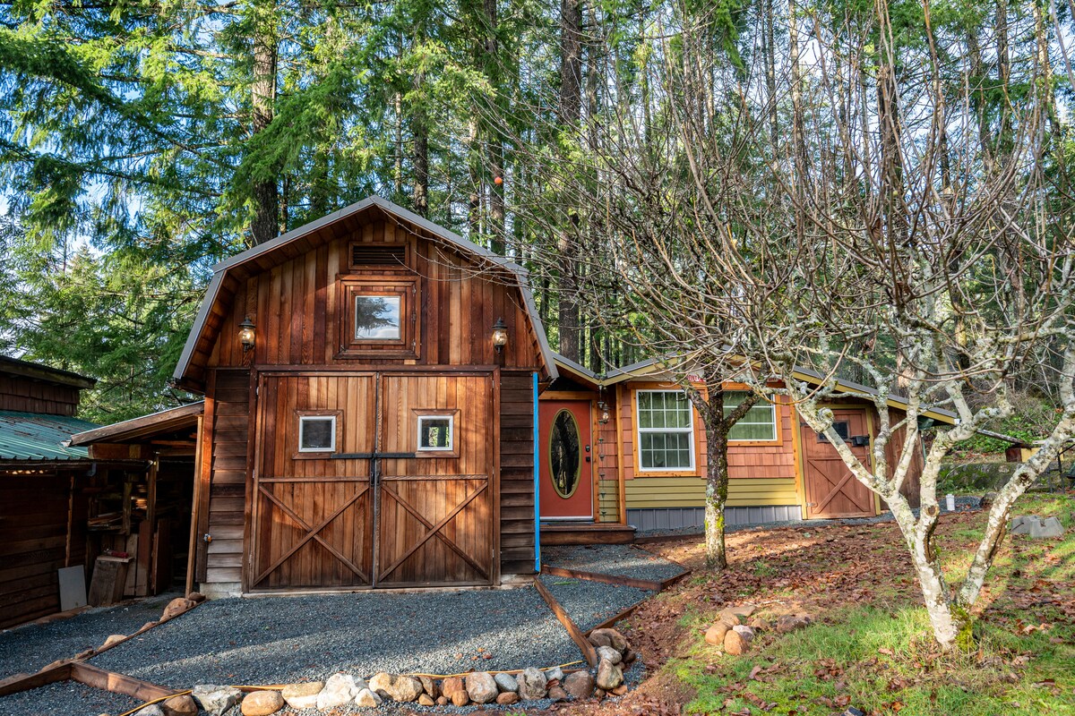 Nuestra acogedora cabaña de huéspedes está enclavada en el bosque, a cinco minutos a pie de la playa y cerca de rutas de ciclismo de montaña. ¡Cena al aire libre en el gran patio! Acceso al jacuzzi al aire libre. Se proporcionan albornoces de felpa. Cocina bien equipada que incluye nevera de tamaño completo, horno de convección, placa eléctrica, microondas, molinillo, cafetera y barbacoa de propano al aire libre. Ducha cubierta. Inodoro de compostaje ecológico Sun-Mar en un edificio separado. Hay un monitor montado en la pared (sin cable) para conectar tus dispositivos.
