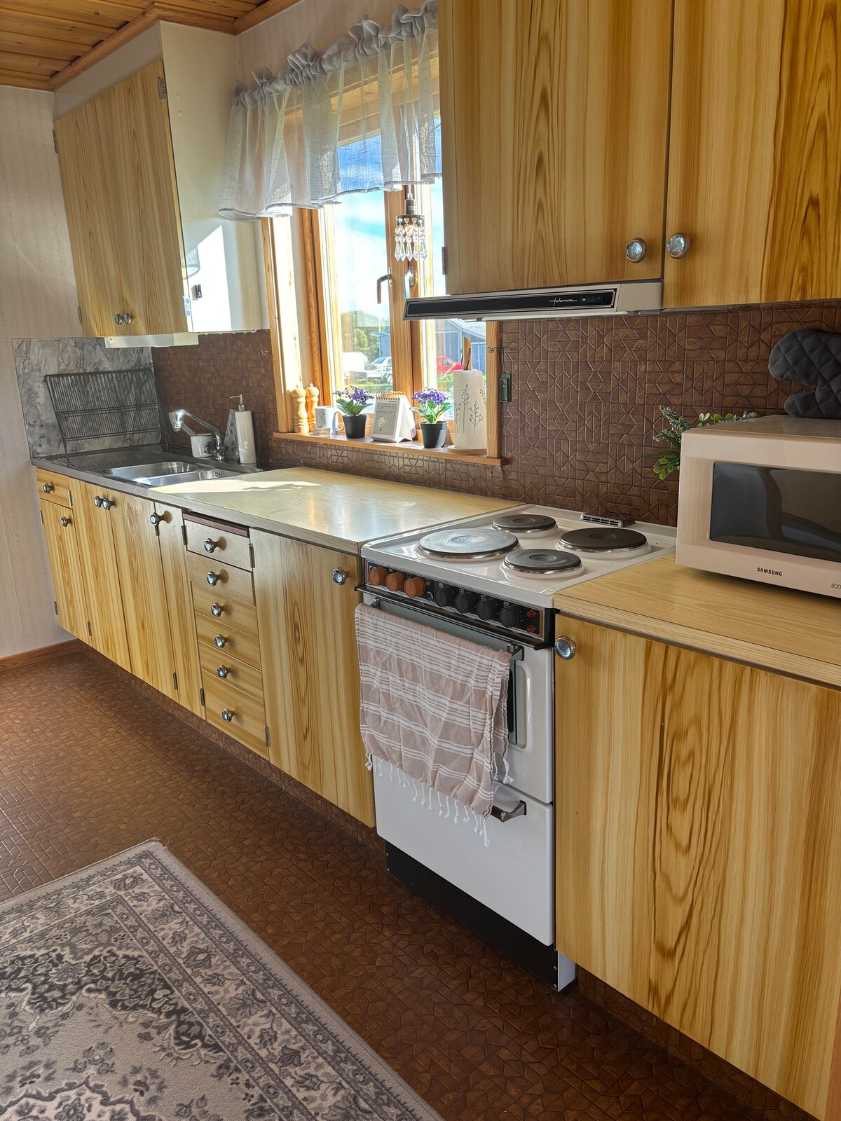 The price includes among other things Wi-Fi, clearing after your stay, parkingspace with electric car charger or engine heater, private sauna, AC, private backyard with south-facing balcony, TV with chrome cast, towels, sheets, fully equipped kitchen, washing machine and underfloor heating in bathroom.