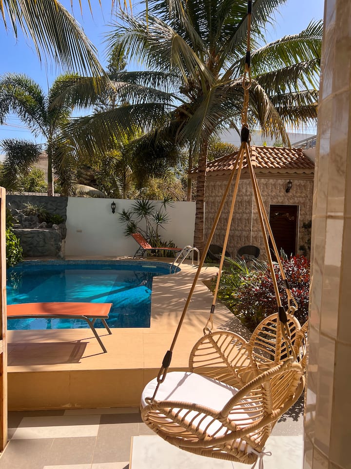 Este es uno de los pocos alojamientos en la zona con pileta.