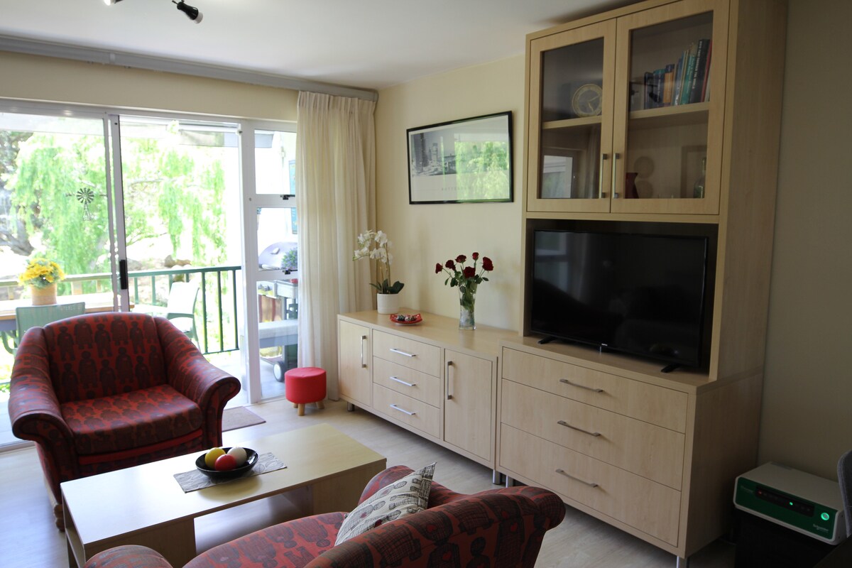 Esta casa de campo independiente en nuestra propiedad privada se encuentra en la zona de Bishopscourt, en el Cabo Occidental. La casa de campo es un salón de planta abierta, dormitorio con dos grandes terrazas, una pequeña cocina y un gran baño con ducha y bañera que se abre a un balcón muy privado con tumbonas y una ducha exterior. Con magníficas vistas a la montaña y los terrenos, uno puede desconectar y relajarse por completo en esta casa de campo más que espaciosa. Esta casa de campo privada será toda tuya durante tu estancia. Hay varias zonas de descanso dentro y fuera de la casa. Nuestra ama de llaves de larga data, Maks, estará allí para cuidarte y asegurarse de que siempre tengas lo que necesitas. Limpia y lava la ropa a diario, excepto los domingos. Situada a poca distancia a pie de muchas caminatas impresionantes, rutas de senderismo, ciclismo de montaña y rutas de ciclismo. Hay muchos lugares cerca donde puedes alquilar bicicletas y hay un amplio espacio de almacenamiento en la casa para guardarlas. Hay un amplio y seguro estacionamiento en nuestra propiedad para el vehículo que traigas durante tu estancia. Por lo general, estoy aquí y estaré encantado de ayudarte con consejos en todo momento. Este alojamiento se encuentra en una zona residencial tranquila con hermosas casas y calles arboladas. Cerca de los jardines botánicos y cerca de la ciudad. Uber disponible. Aparcamiento seguro en los terrenos de la propiedad. No hay necesidad de unidades de aire acondicionado, ya que el aire de la montaña por las mañanas y noches será fresco y nítido durante todo el año. Hay un ventilador de techo, si necesitas refrigeración adicional. Toallas, toallas de playa y cesta de picnic disponibles en la casa. El espacio es de unos 60 metros cuadrados +