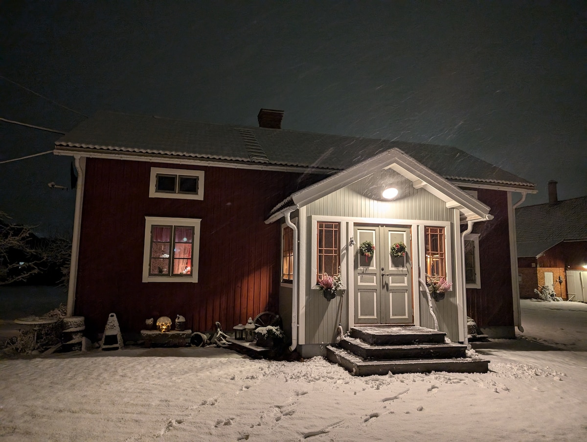 Välkomna till det historiska området Bergslagsbyn, centralt beläget i Borlänge. Huset har ett utrustat kök, bekväm bäddsoffa och matplats, ett sovrum samt bastu för sköna stunder efter en dag utomhus. Det är 2 km både till kupolen och Borlänge centrum. Romme alpin når du på 20 minuter. Boendet fungerar för upp till fyra personer då man nyttjar bäddsoffa. Vi som värdar bor på gården i det större bostadshuset och finns till nära till hands om ni behöver något.