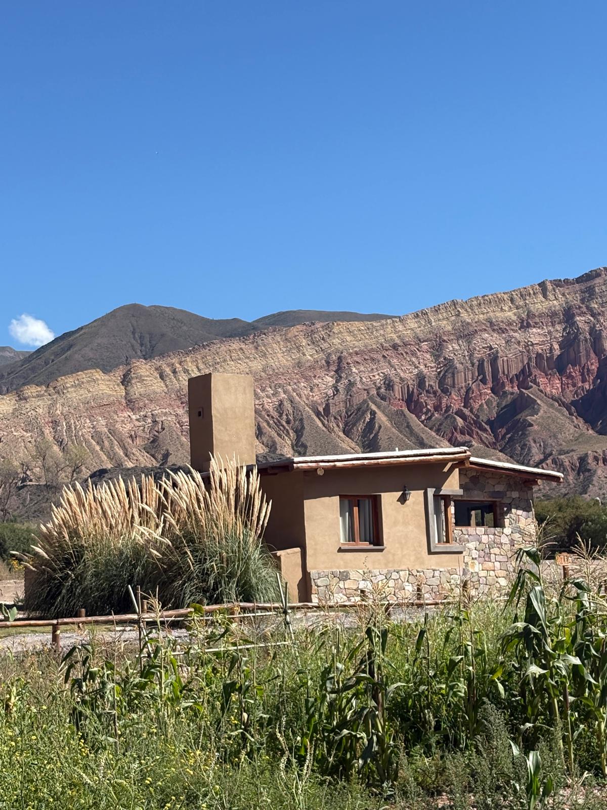 Nos esforzamos en cada detalle de la construcción, desde los materiales a los cuadros y el equipamiento. La orientamos hacia el cerro de 7 colores para que la vista desde el sillón te sumerja las montañas majestuosas de la Quebrada de Humahuaca. La pusimos entre viñedos, para que inspiren los sentidos cuando pruebes nuestros vinos. La acercamos al cerro para que ofrezca una experiencia relajada, bucólica y única. Los esperamos para disfrutarlas y ayudarnos a completar su descripción.