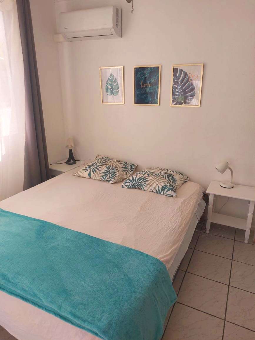 Se encuentra a 3 minutos desde el aeropuerto y a 10 minutos del muelle (centro de la ciudad) en una zona tranquila. La propiedad consta de una casa y 1 bungalow con un gran patio . La casa consta de una gran cocina que da acceso directo al dormitorio con salón y baño exterior. A PARTIR DE LA 4ª PERSONAS ABRO EL BUNGALOW. La segunda es el bungalow, un dormitorio grande y su baño .