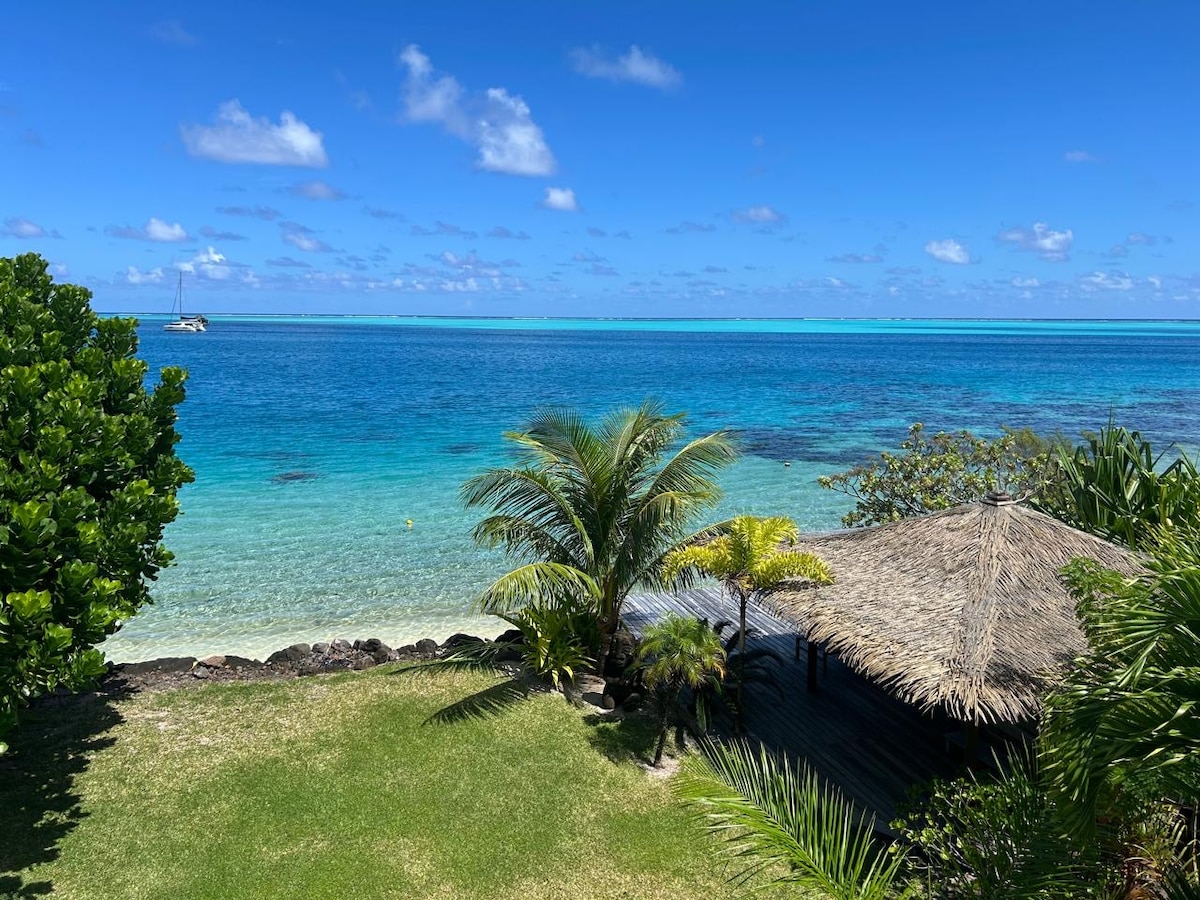 Nous avons 2 annonces sur le site « Villa Nuutai 1 » et « Villa Nuutai 2 ». Votre chambre donne directement sur une belle plage de sable blanc et un magnifique lagon au dégradé d’un bleu des plus profond à un turquoise éblouissant où nagent de nombreuses raies Aigles, Léopard et même les fameuses raies Mantas ! Nous disposons d’une plage avec une eau cristalline où l'on peut véritablement se baigner. Juste en face, vous découvrirez un très beau jardin de corail et des poissons multicolores !
