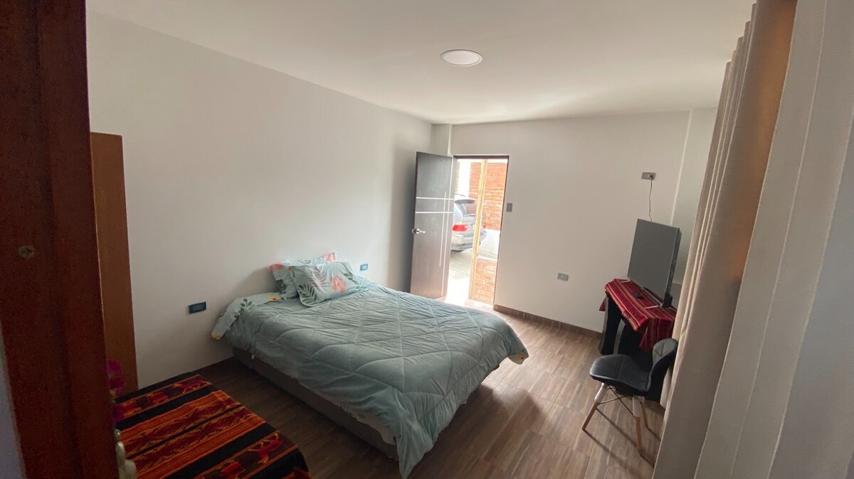 Disfruta de la la comodidad de una amplia habitación . con excelente ubicación (a 12 minutos caminando y 4 minutos en carro de de la Plaza de Armas) , acceso independiente; cálida y acogedora, cómoda e iluminada, baño privado con agua caliente las 24 horas , smart tv 35', cable premium, Wi-Fi.. harán muy agradable tu estadía. Te brindamos útiles de aseo y recojo a la estación de bus, vendre a darte la bienvenida y a recibirte con un cálido abrazo