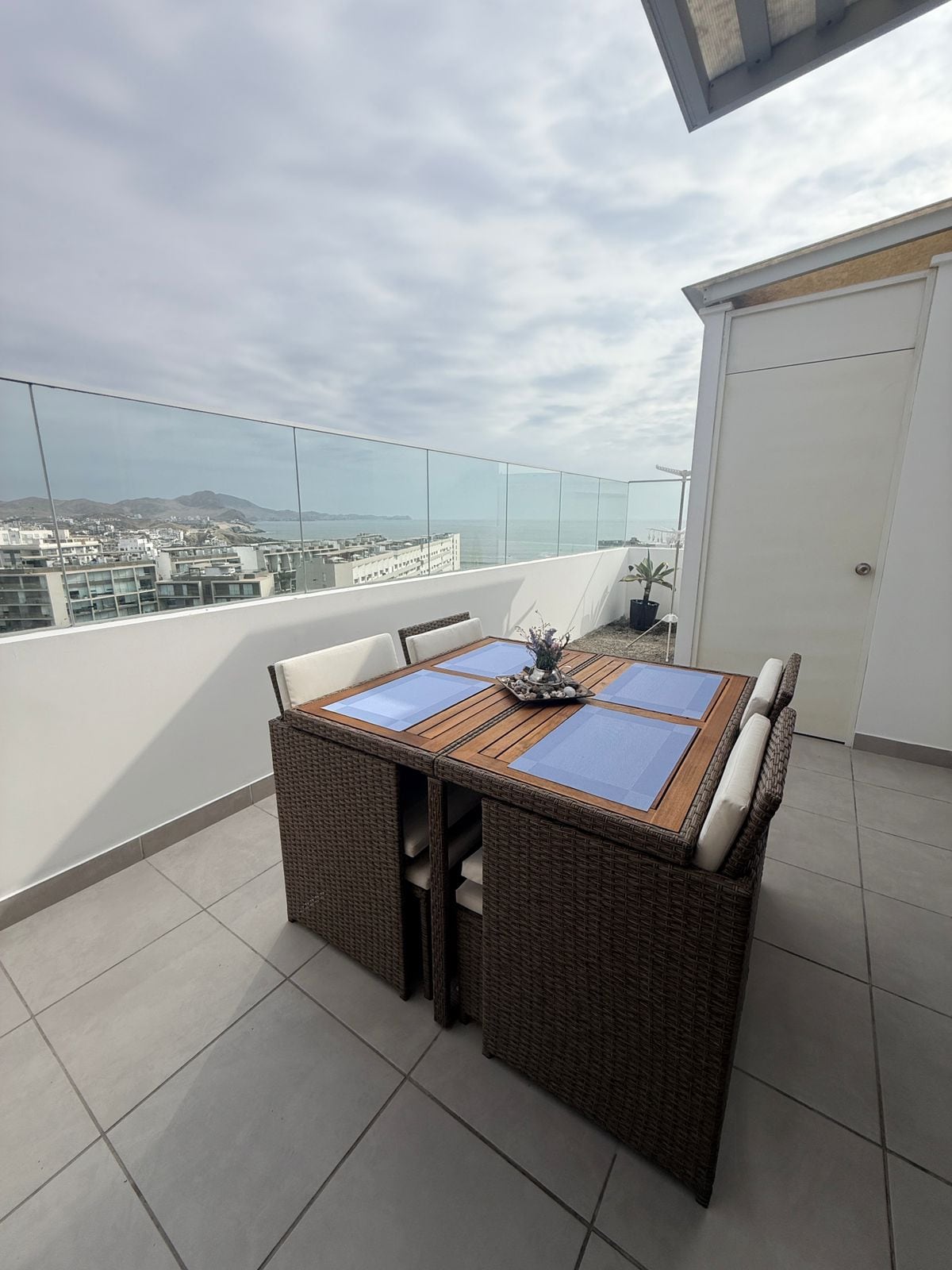 Relájate en uno de los balnearios más lindos del Sur de Lima y cuna del surf peruano. Disfruta de actividades al aire libre y deportes acuáticos. Goza de la tranquilidad del mar y sus vistas, así como de los atractivos gastronómicos. Te ofrecemos una cálida estadía de hogar en nuestro apto a 3 cuadras de Playa Norte, con 3 dormitorios, 3 baños, sala con balcón y vista a playa norte, comedor, cocina y estacionamiento. Edif c/ ascensor. Zona resguardada.