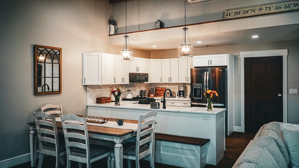 Bienvenido a nuestro acogedor y luminoso apartamento de 2 dormitorios en el centro de Kingston. La ubicación es un paraíso para los caminantes, con lo mejor del histórico distrito de Stockade a solo un paseo de distancia, y está bien situado para explorar el valle del Hudson y las montañas Catskill. Las comodidades incluyen un sofá de cuero, Roku SmartTV, proyector HD, lavavajillas, ropa de cama de lujo para una noche de sueño de ensueño, cortinas opacas, una máquina de sonido y dos sillones en el porche delantero.