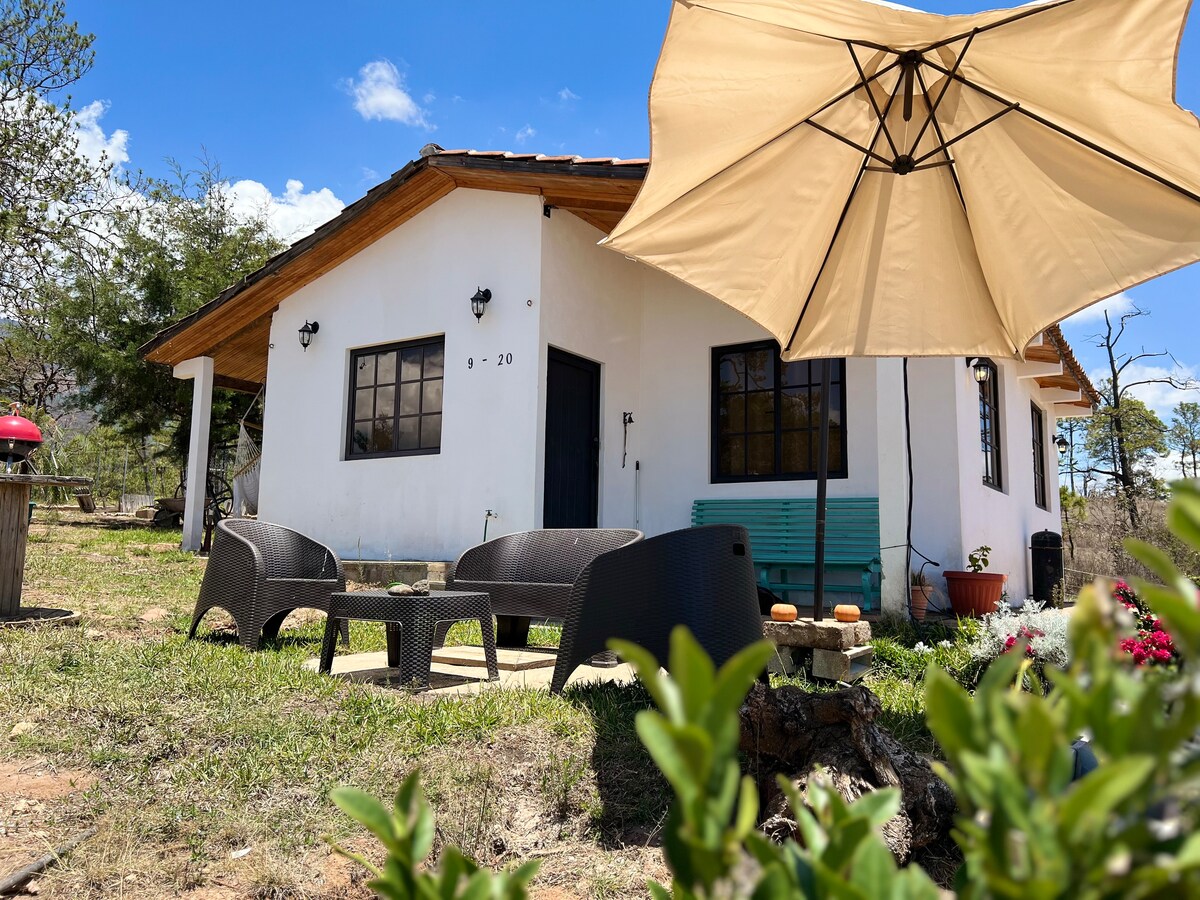 Hospedaje sereno lleno de luz natural. Esta villa entre las montañas tiene dos habitaciones, cocineta, comedor y varios estares de interior y de exterior. Desde la cómoda silla frente al fire pit pueden verse las montañas de cuatro departamentos de Guatemala. Es el lugar perfecto para relajarse, tomarse una taza de buen café huehueteco por la mañana y una copa de vino por la tarde.