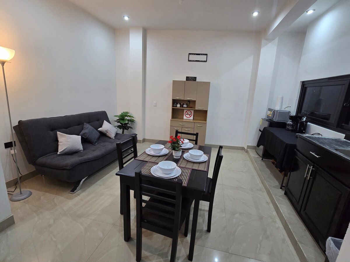Disfruta de la sencillez de este alojamiento tranquilo y céntrico. Apartamento en segundo nivel, totalmente equipado y listo para habitar. Cuenta con parqueo bajo techo y acceso de 10 gradas aproximadamente. Espacio moderno, funcional y acogedor, ideal para quienes buscan comodidad, seguridad y una excelente ubicación.