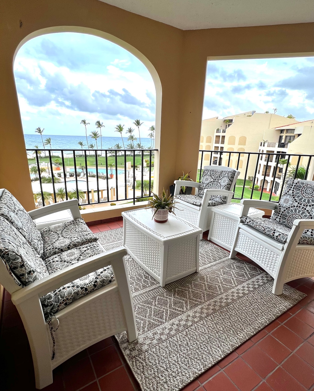 Esta increíble villa de 1 dormitorio y 2 baños completos se encuentra en Palmanova Plaza, el corazón de Palmas del Mar, una comunidad cerrada en Humacao, con una hermosa vista a la playa desde la gran terraza al aire libre. Este condominio está ubicado en el segundo piso de un edificio con ascensor privado dentro de una comunidad de playa privilegiada. Una piscina para residentes se encuentra en la azotea y está a poca distancia de la playa. Restaurantes y tiendas ubicados en el nivel inferior del edificio.