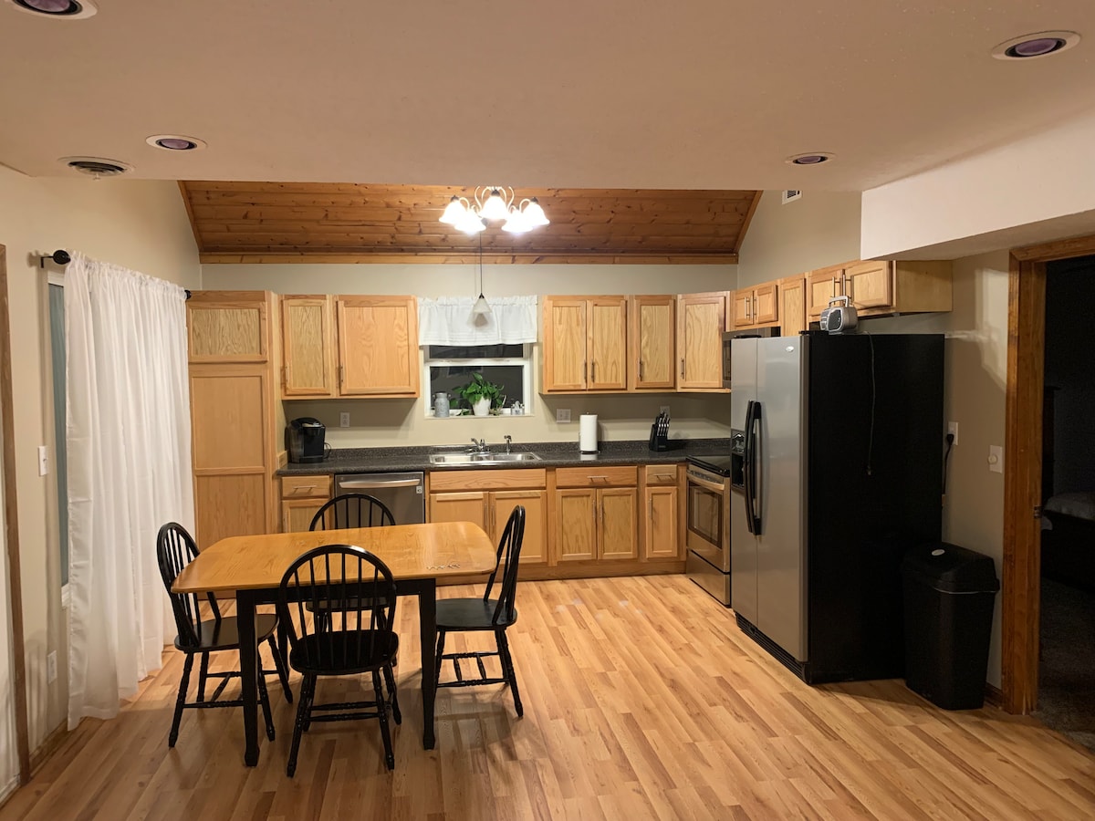 This Cape-Cod style home sleeps 11–12 guests (no bunks!). It features 3 comfortable bedrooms plus a large bonus room with a twin bed and sofa bed, perfect for kids or extra guests. Enjoy a spacious living area, fully equipped kitchen, and serene views of the surrounding fields and valley. Night skies are brilliant and free of city lights, ideal for stargazing. Amenities include a work desk, laundry, piano, and plenty of space for both work and play.. Keyless entry for easy self-check in.